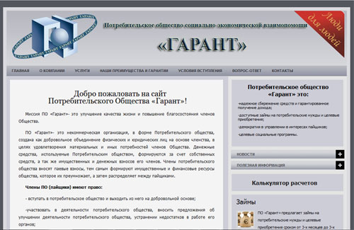 Сайт потребительского Общества «Гарант»
