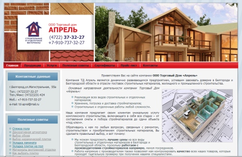 Сайт ООО Торговый Дом «Апрель»