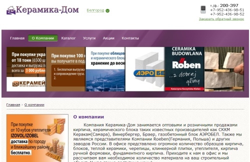 О компании: Компания Керамика-Дом занимается оптовыми и розничными продажами кирпича, керамического блока таких известных производителей как СККМ Керакам(Самара), Винербергер, Браер, газобетонный блок АЭРОБЕЛ.