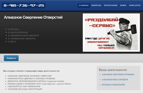 О компании: Компания осуществляет алмазное сверление отверстий в бетоне, железобетоне, керамическом и силикатном кирпиче, буте.