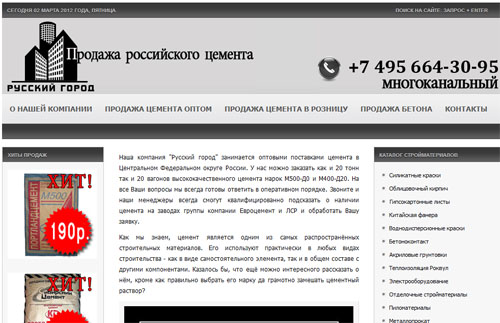 О компании: Компания "Русский город" занимается оптовыми поставками цемента в Центральном Федеральном округе России.