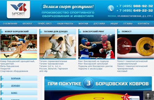 Сайт компании "ВК-СПОРТ" (Москва)