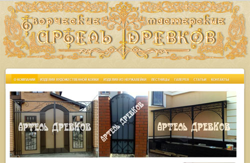 О компании: ООО ТМ «Артель ДревКов» - молодая и динамично развивающаяся компания. Основное направление деятельности компании - изготовление художественных кованых изделий любой сложности (ворота и заборы, решетки и ограждения, кованая мебель и предметы интерьера, торговое оборудование, лестничные и балконные ограждения), а так же изготовление бескаркасных конструкций арочного типа.
