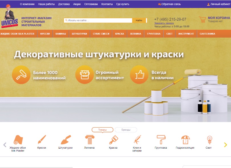 О компании: компания «UMCOS» — это надёжный поставщик строительных материалов, предлагающий своим клиентам сотни наименований по доступным ценам. Являясь опытным и проверенным партнёром, фирма предлагает бесперебойное снабжение объектов, оптовые поставки продукции региональным представителям, дилерские скидки и широкий спектр дополнительных услуг.