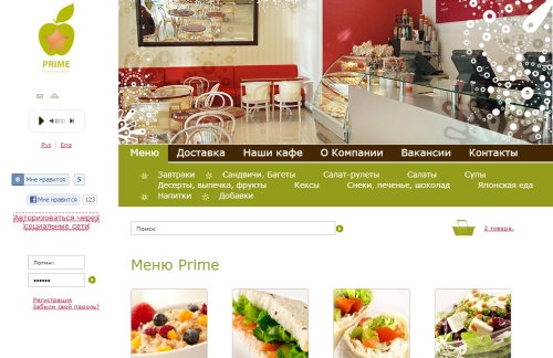 Сайт сети кафе премиум сегмента "Prime" (Москва)