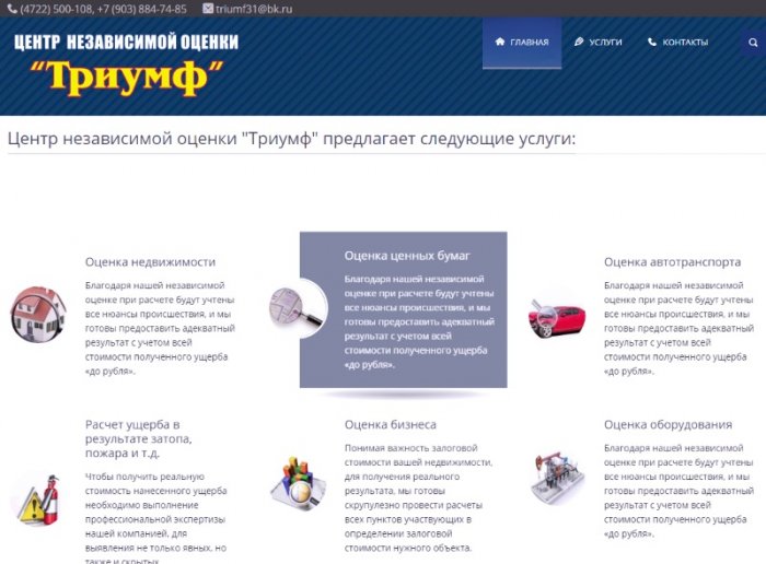 О компании: основное направление деятельности компании «Триумф» - проведение независимых экспертиз и оценки имущества