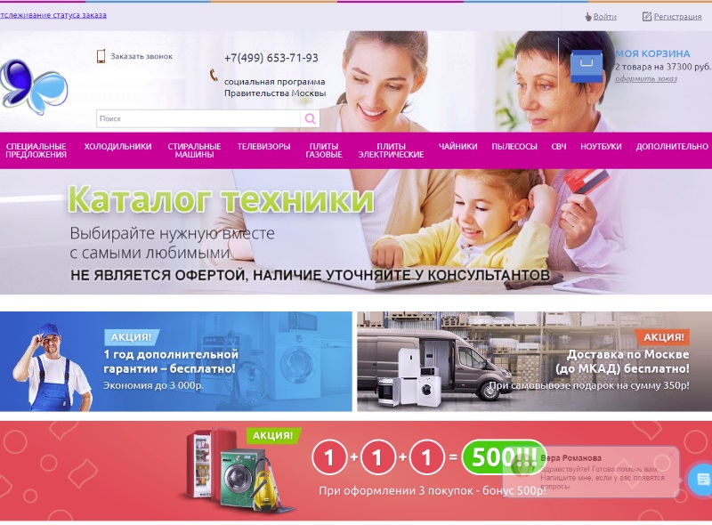 О компании: сайт разработан специально для реализации социальной программы правительства Москвы. Правительство возмещает льготникам часть стоимости техники, при покупке её на этом сайте.