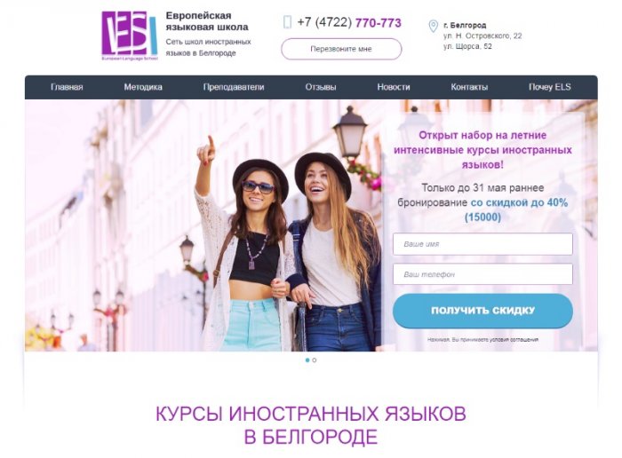 Сайт европейской языковой школы