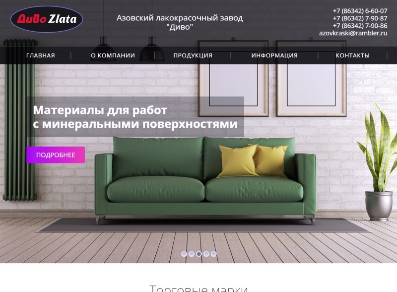 О компании: компания ООО «АЛКЗ «Диво» более 15 лет занимается производством лакокрасочной продукции. Выпуск ЛКМ осуществляется по отработанным годами рецептурам из высококачественного сырья на импортном оборудовании.