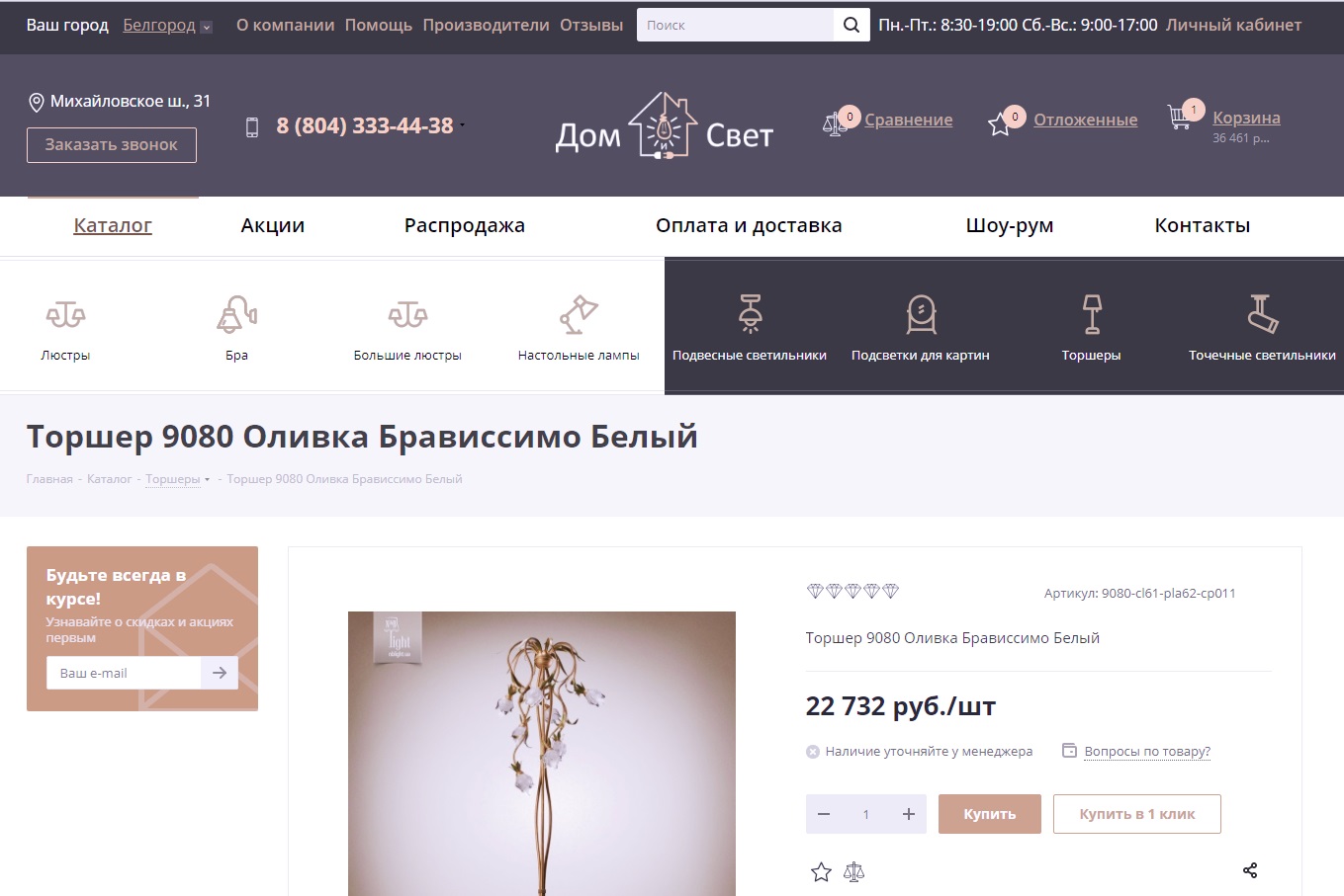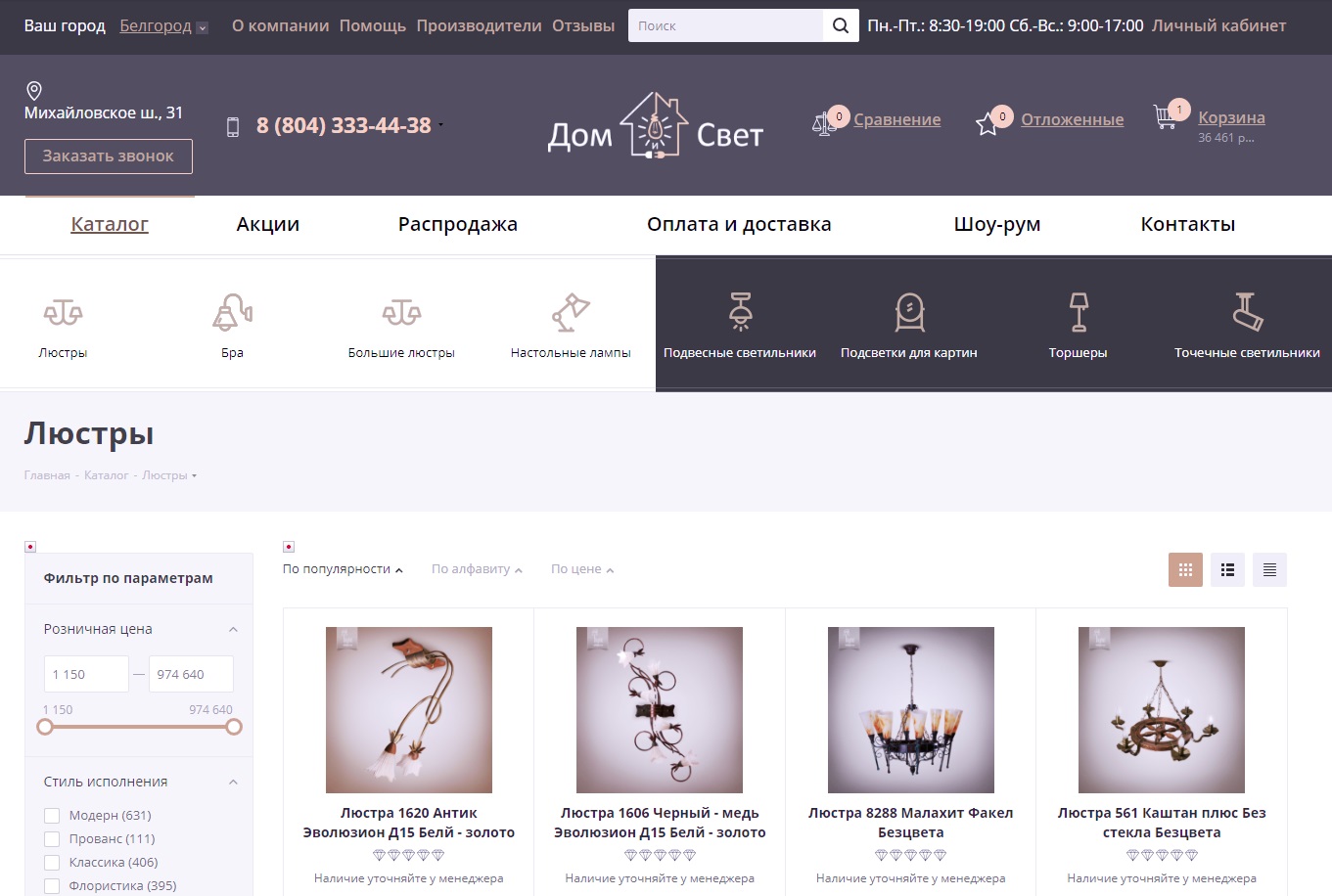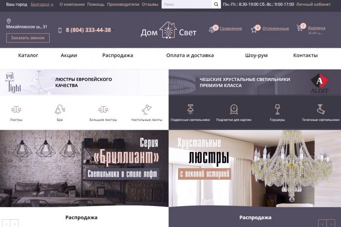 Сайт разработан на основе системы Битрикс. Осуществлен обмен данными с 1С - товары на сайт выгружаются из 1С, а заказы с сайта передаются в 1С. Добавлены интерактивная карта, форма обратной связи, фотогалерея, слайдер, он-лайн консультирование, возможность оформления заявки непосредственно на сайте.