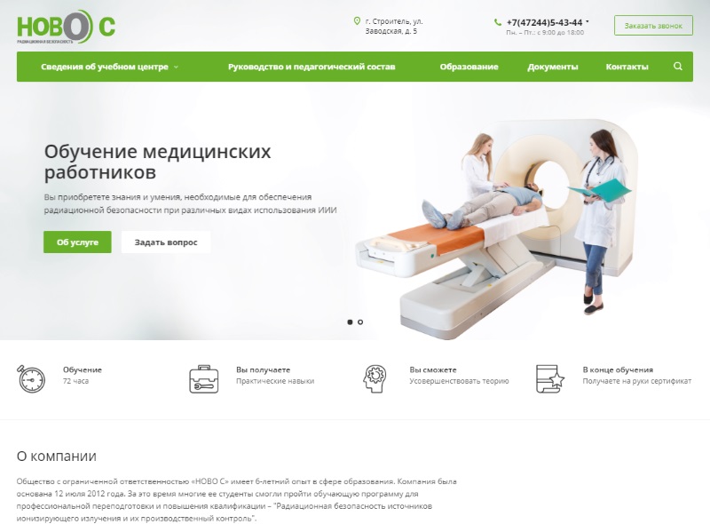 О компании: В ООО «НОВО С» обучаются медицинские сотрудники, работающие с рентгеноборудованием, аппаратами томо- и рентгенофлюорографии, другими источниками ионизирующего изучения для борьбы с онкологией и другими заболеваниями.