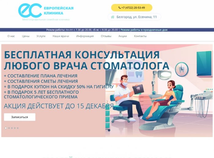 Сайт разработан на основе системы Битрикс. Добавлены интерактивная карта, форма обратной связи, фотогалерея, слайдер, он-лайн консультирование, возможность записи на приём непосредственно на сайте.