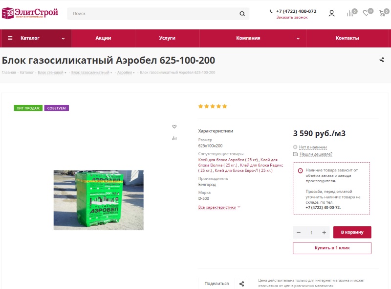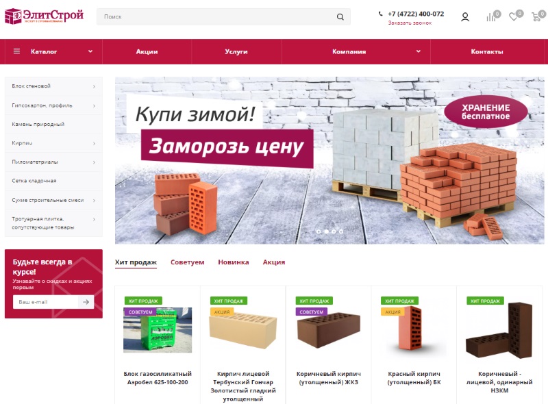 Компания "ЭлитСтрой" один из передовых строительных альянсов г. Белгорода. В интернет-магазине продаётся большой ассортимент строительных материалов.