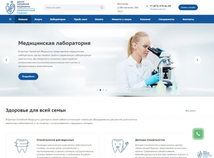 Сайт центра семейной медицины "Живоносный родник"