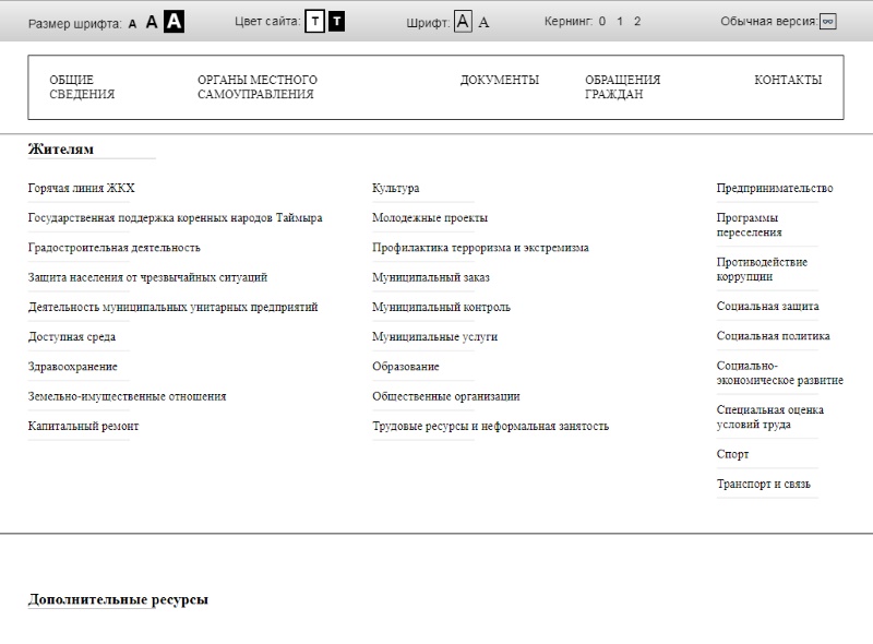 На сайте разработана полноценная версия для слабовидящих, позволяющая переключать цвет и размер шрифта.