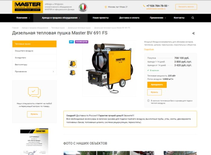 компания является официальным дилером итальянского завода "Master", занимается арендой и продажей оборудования.