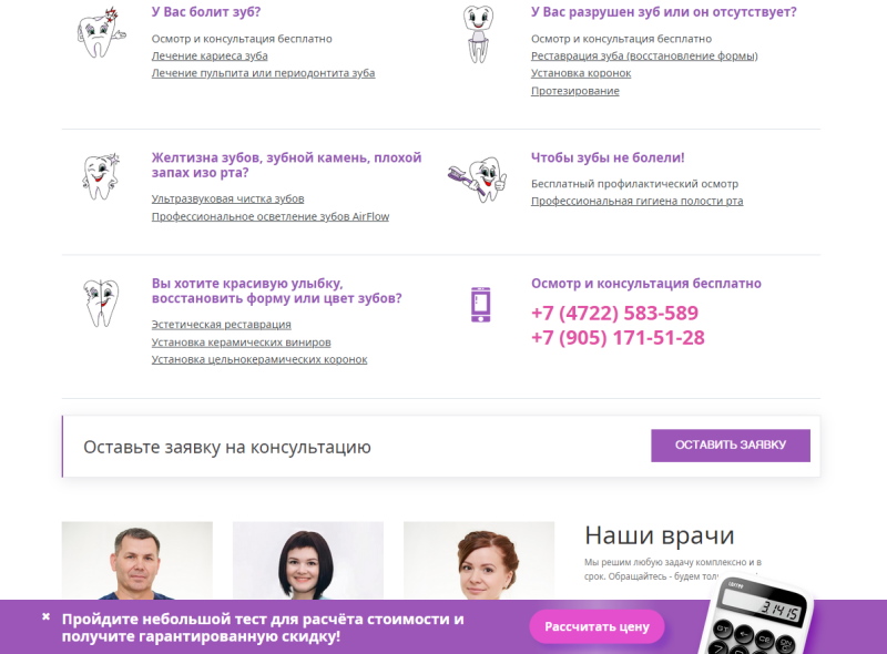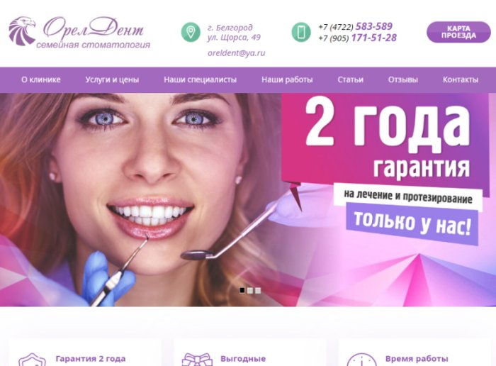 Редизайн сайта стоматологии "Орел Дент"