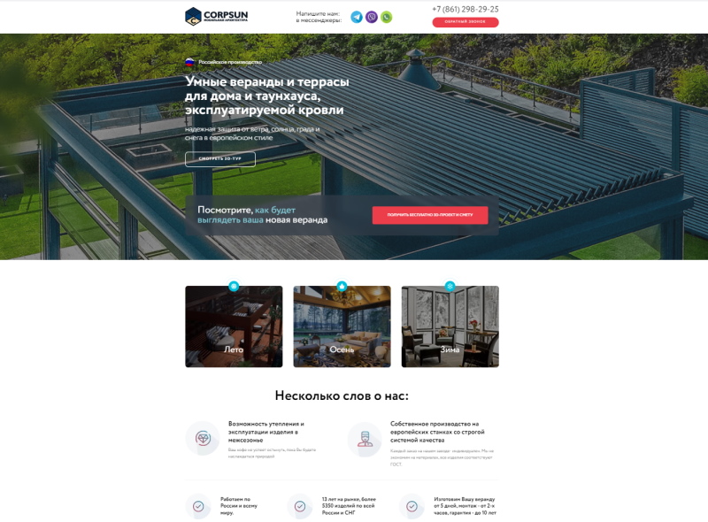 Мы сотрудничаем с компанией CORPSUN уже не первый год, за это время успели разработать для них несколько сайтов и огромное количество рекламных материалов. Весной 2022 года был разработан LandingPage для компании. Над проектом работала команда дизайнеров и разработчиков, которые смогли воплотить все задумки владельцев компании с учётом последних тенденций сайтостроения.