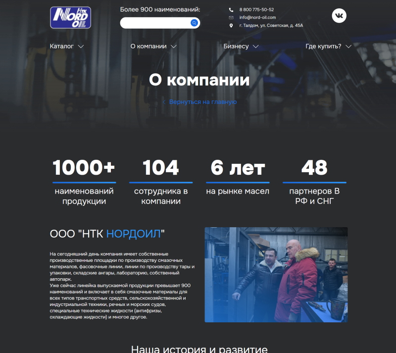 Сайт ООО «НТК Нордоил»