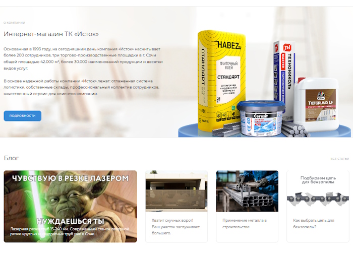 Основанная в 1993 году, на сегодняшний день компания «Исток» насчитывает более 200 сотрудников, три торгово-производственные площадки в г. Сочи общей площадью 42.000 м², более 30.000 наименований продукции и десятки видов услуг.