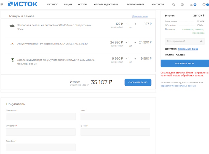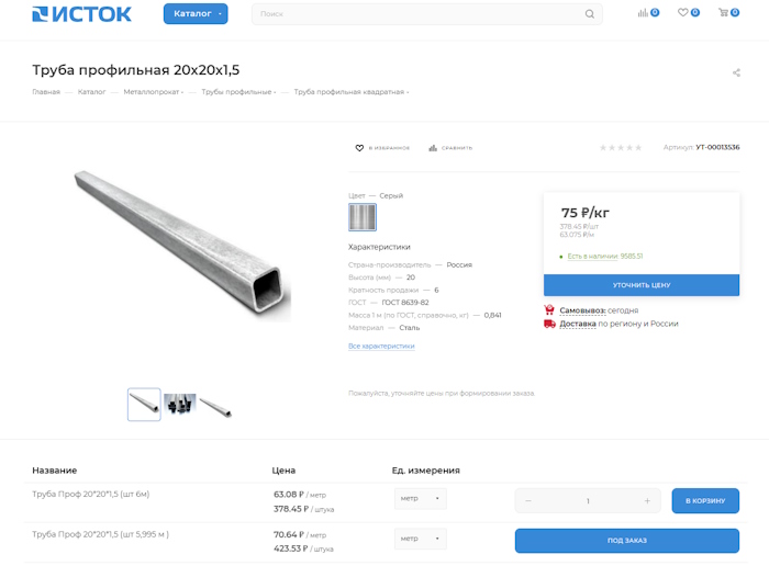 Отличительной особенностью данного сайта является возможность выбора пользователем единицы измерения некоторых товаров при добавлении в корзину. Т.е. пользователь может купить товар указав необходимые ему метраж, вес, или количество.