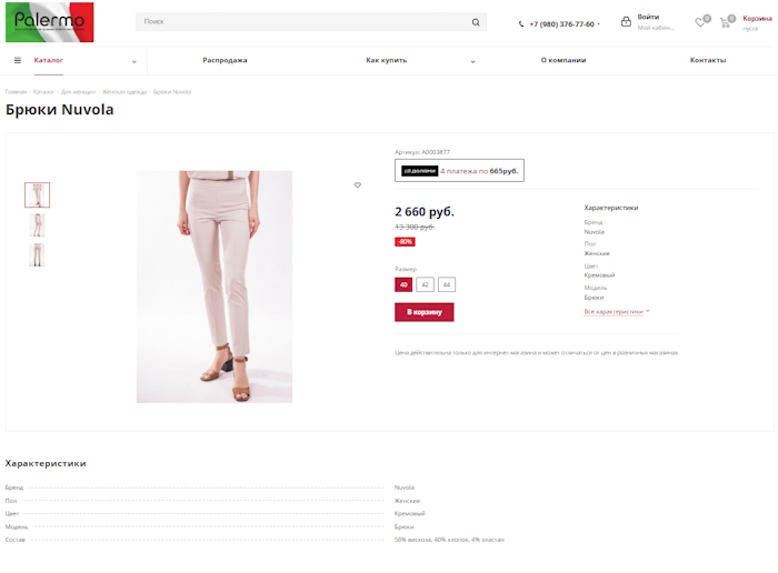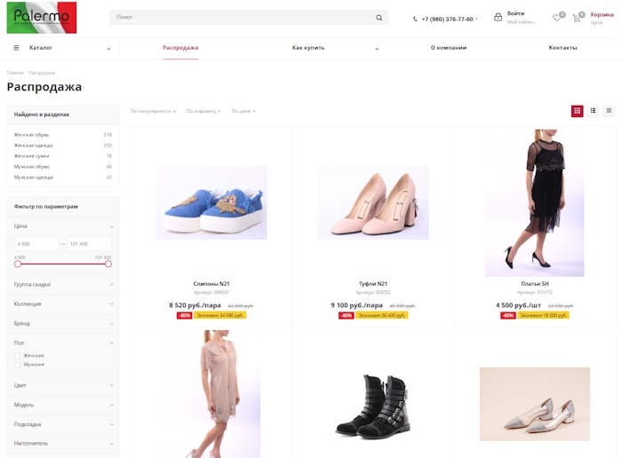 Компания PALERMO основана в 2008 году. На данный момент в сети представлены более 50 известных по всему миру брендов, и каждый сезон мы добавляем модные новинки.